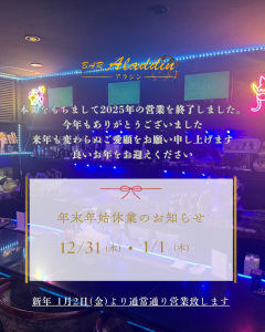 昨日12月30日をもちまして、BARアラジンの2025年の全営業を終了させていただきました。 📅🔚