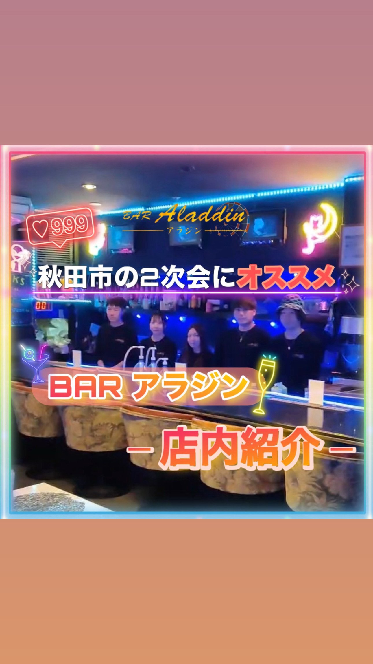 こんばんは!秋田市大町3丁目、ジャスマックビル1F。Googleマップの「秋田市 バー」検索で、圧倒的な共感と支持をいただく大町のパワースポット、BARアラジンです!🕺✨
